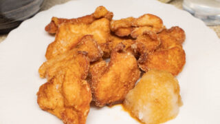 - 細切りにして軽く塩と胡椒をし、小麦粉をまぶす