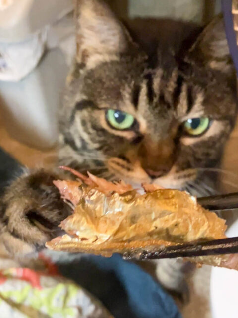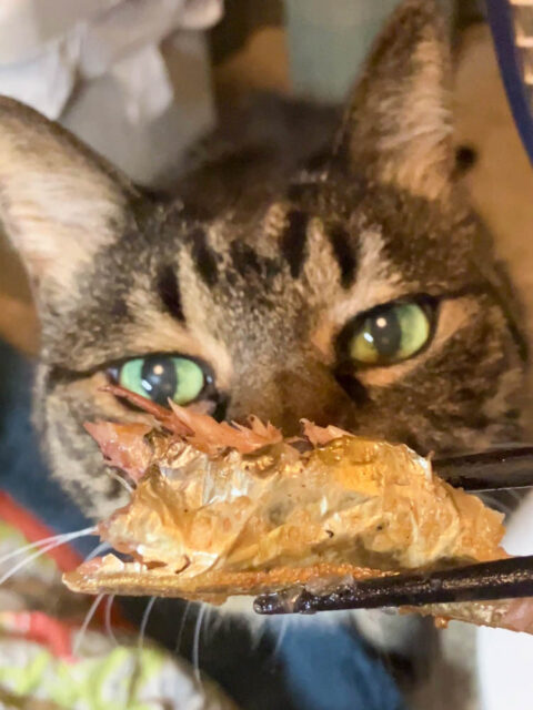 秋刀魚焼いたら、今年もやっぱり猫が来た