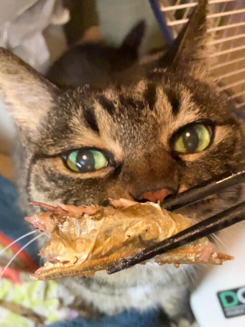 鶏や乳製品にはまったく興味がないケインですが、焼き魚だけは特別なようです。
