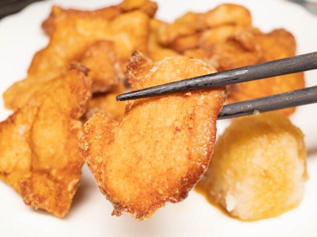 衣をかじった瞬間、サクッと軽い歯ざわりのあとに、豚もも肉のやわらかく、しっとりとした旨みがじんわり広がります。脂の少ない部位だからこそ、噛むほどにお肉そのものの味が感じられ、さらに醤油と生姜の香りがそれを引き立て、いくらでも食べられてしまうおいしさです。