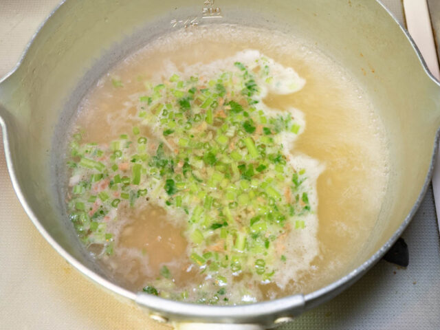 沸騰したら液体スープを溶かし、1分ほど煮ます。