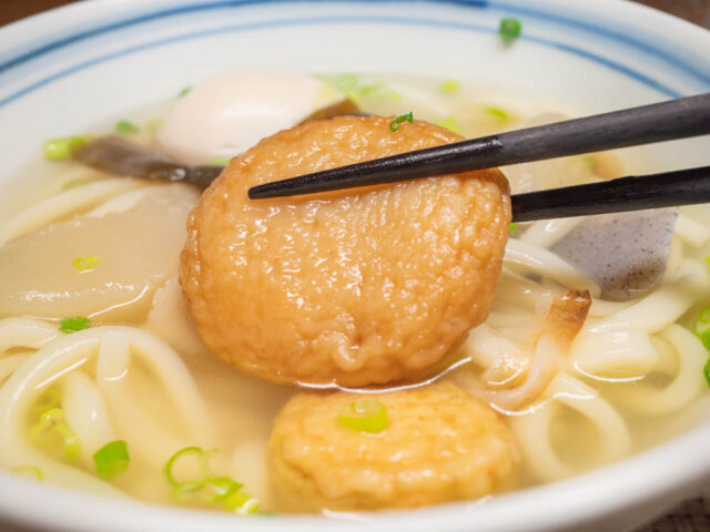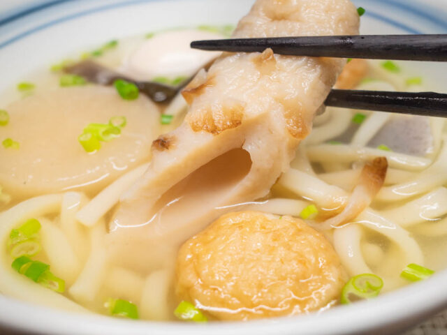 以前、「おでん」に「おうどん」を入れてみたときに感じたのは、これは「ちくわぶ(竹輪麩)じゃん」という感想です。子供の頃に食べたおでんには必ず「ちくわぶ」が入っていましたし、とても好きでした。