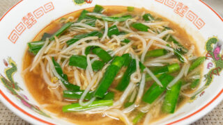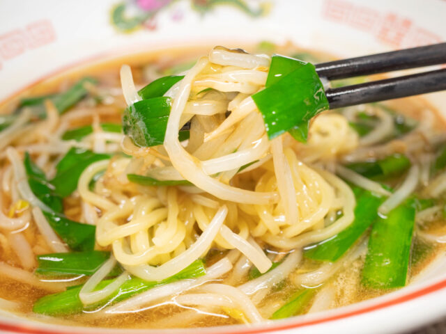 お肉は使っていませんが、炒めたニラの香りと、熱々のあんかけもやしスープで、なかなか満足度の高いラーメンになりました。