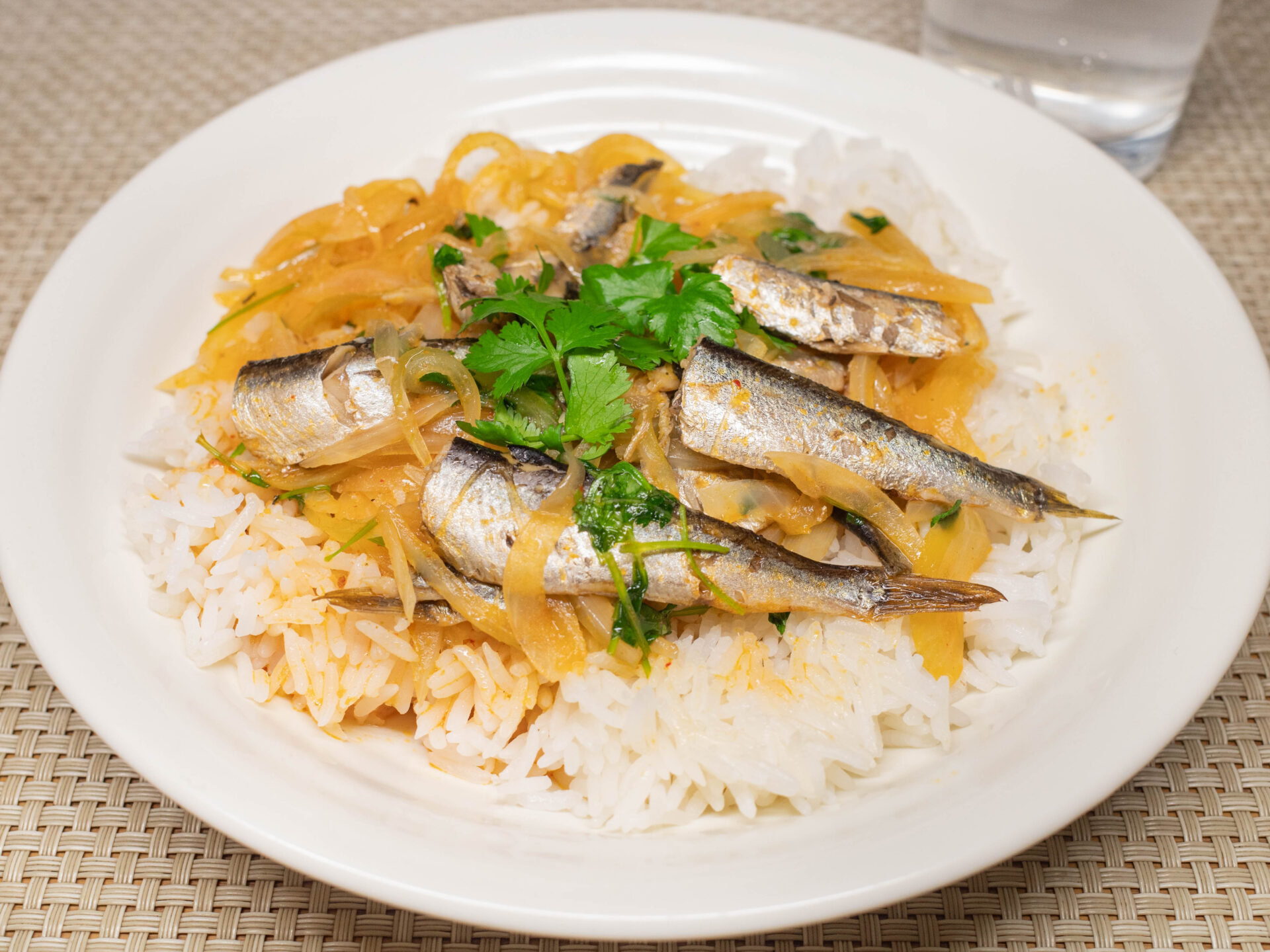 いわしの旨みと玉ねぎの甘み、ライムとパクチーの香りに、トムヤムクンペーストのパンチで、とてもおいしいワンプレートご飯になりました。