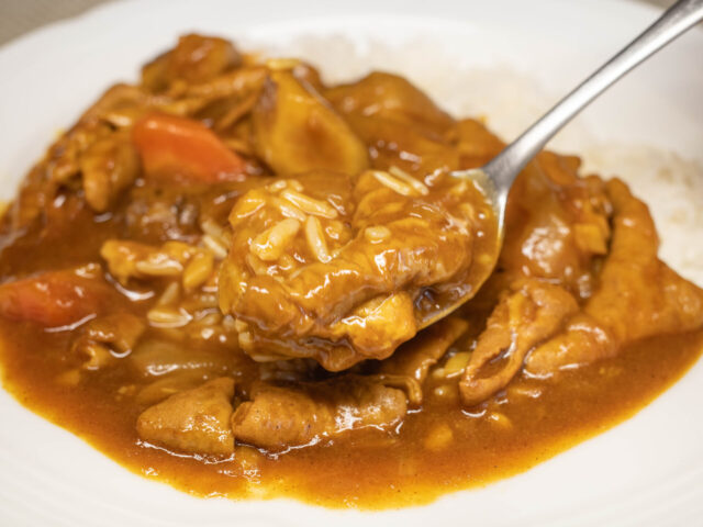 やわらかい豚もつがたっぷり入って、とてもおいしいカレーです。