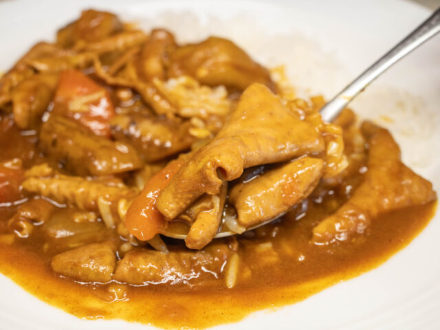 今回の調理工程で、カレーフレークの代わりに味噌や醤油を加えればいつものもつ煮になりますが、カレーもとてもお勧めです。