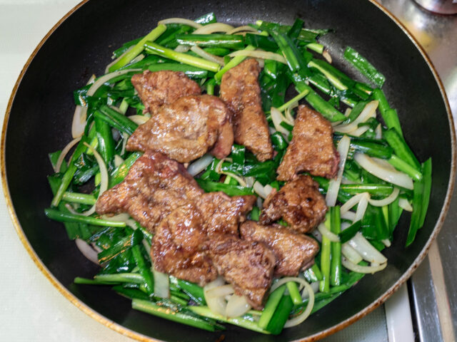 いつもは豚レバーでつくる「レバニラ炒め」ですが、今回は牛のレバーで試してみました。
