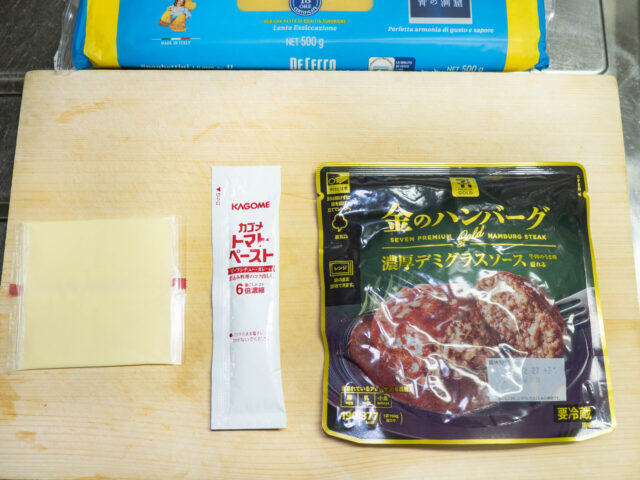 以前に、同じ商品シリーズの「金のハンバーグ」でパスタをつくったことがあります。
