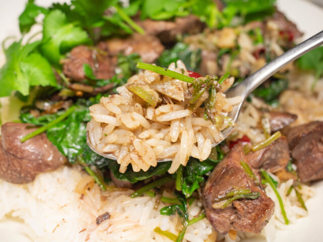 今回のパクチーを使った炒めものとライスの組み合わせは、鶏もつのおいしさを存分に味わえるパワーフードと言えるでしょう。