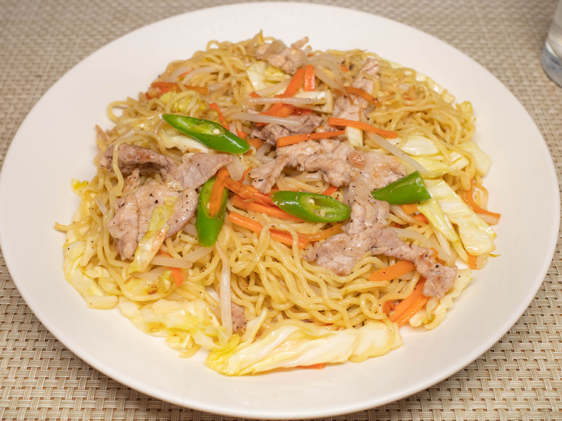 フレッシュな青唐辛子を入れた、具だくさんでピリ辛な塩焼きそばをつくりました。