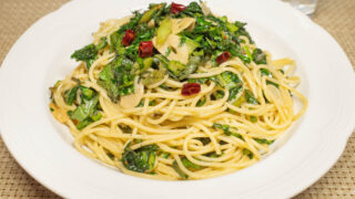 冷蔵庫の中の食材は少ない。手札がさびしいときはパスタで勝負だ。